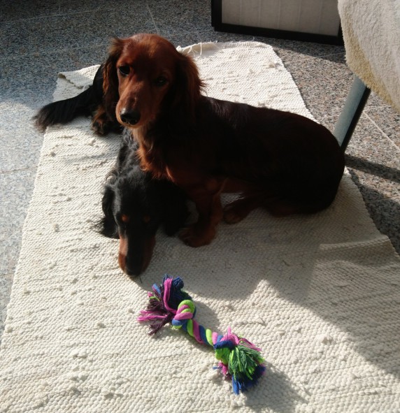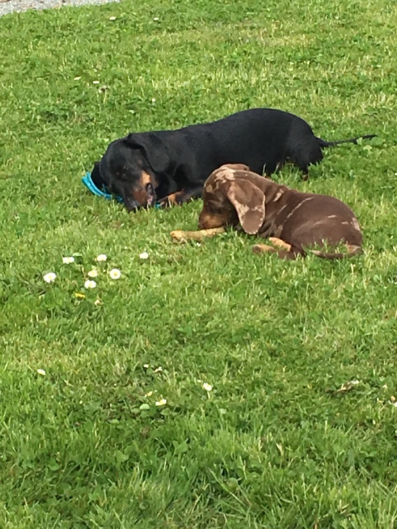 Aaron versteht sich super mit Dackelkumpel Billy, die beiden toben