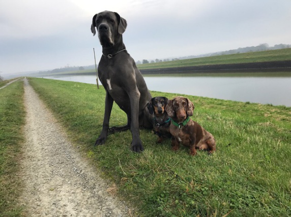 Völlig überraschend bekamen wir von den Besitzern unseres Nachwuchsrüden Amatus King wunderschöne Bilder. Der Schwarztiger ist ein wunderschöner und korrekter Rüde geworden. Amatus King stammt aus unserem A-Wurf nach Achtern Diek's Butzemann aus unserer Tayra vom Hallwanger Silberberg. Herzlichen Dank an die Besitzer, die uns diese Fotos übersandt haben. Amatus King freut sich seines Lebens im Rudelverband mit einem Brauntiger und einer Dogge.