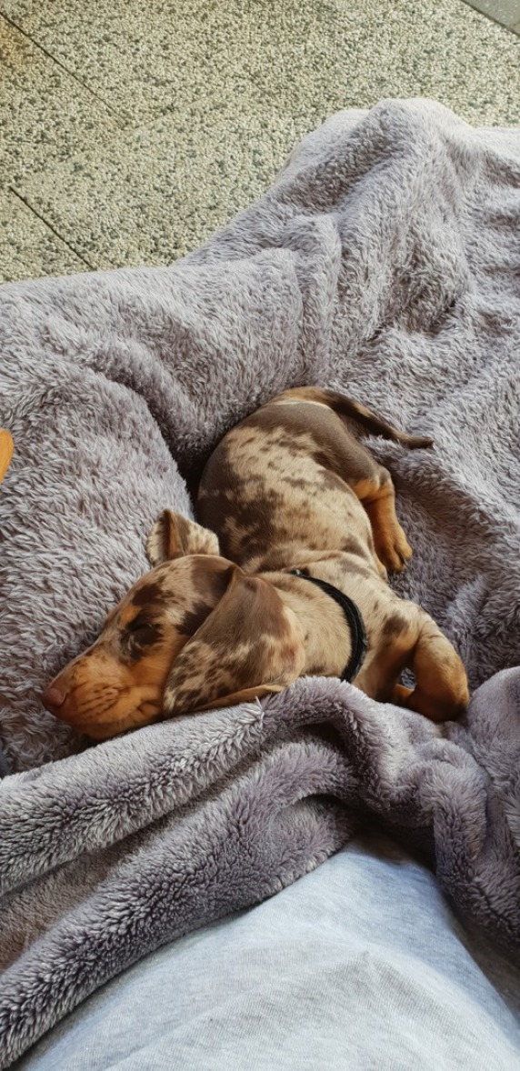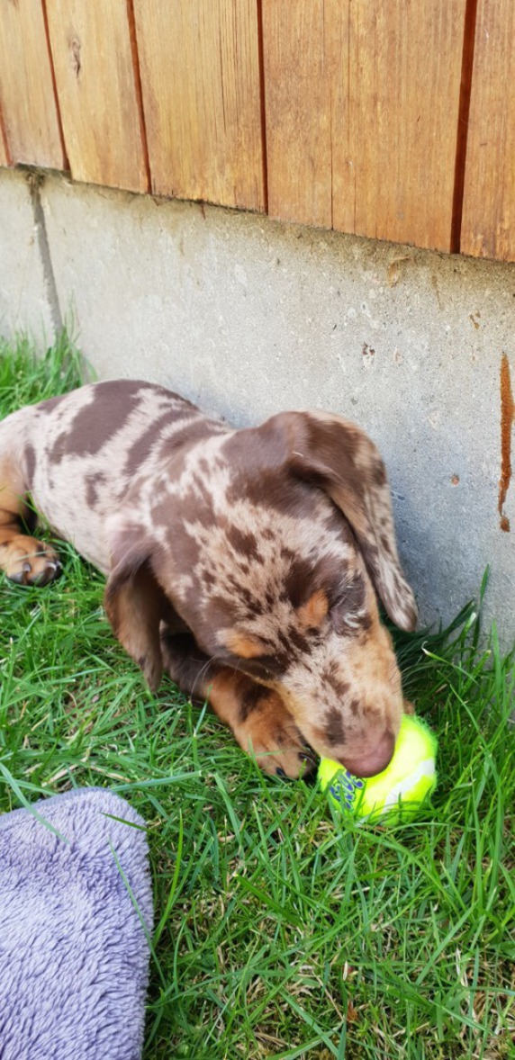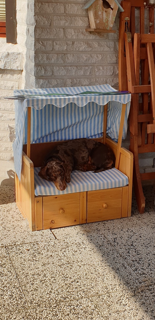 (Wurftag: 03.03.2017 - Tayra v. Hallwanger Silberberg x Achtern Diek`s Butzemann) schickt liebe Grüße und dieses Foto. Ihm geht es sichtlich gut.