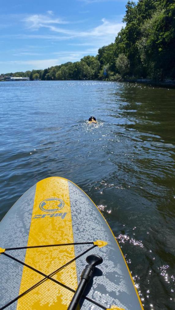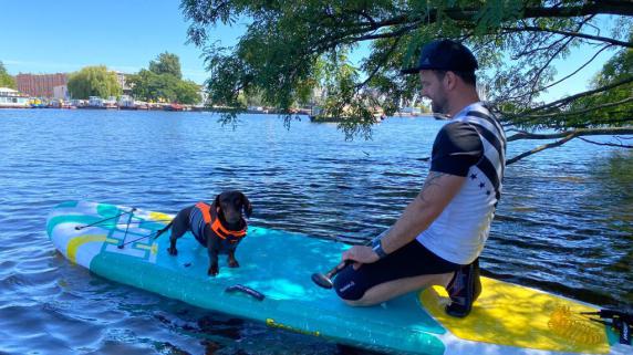 Er genießt den Sommer auf dem Wasser und scheut auch nicht, hinzuspringen. Danke für die tollen Fotos.