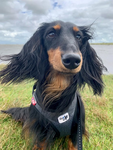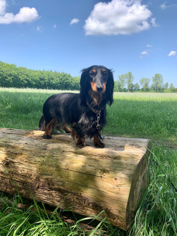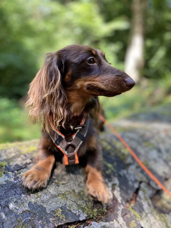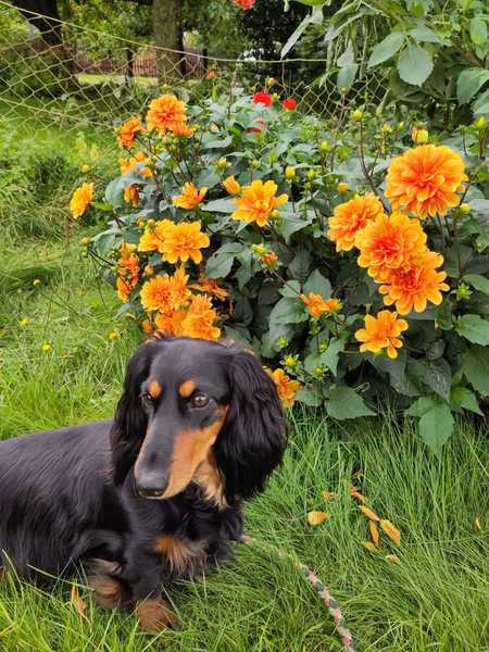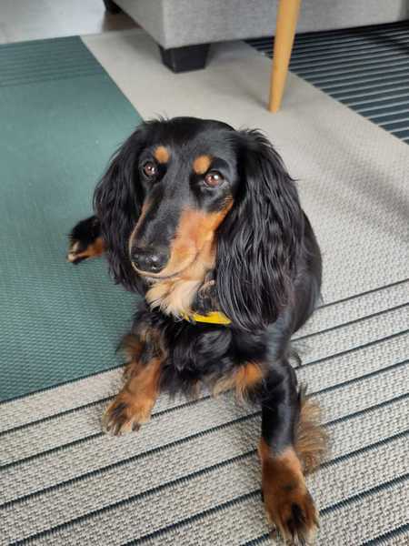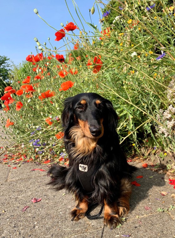 Hinami, die schöne schwarz-rote Langhaarhündin