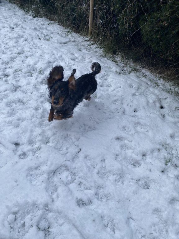 im ersten Schnee (er ist begeistert)