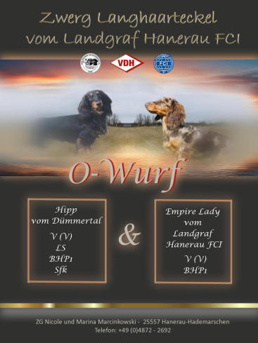 Wir informieren gerne über geplante Würfe, können aber auch nicht für 2-3 Jahre im Voraus Wurfplanungen bekannt geben.