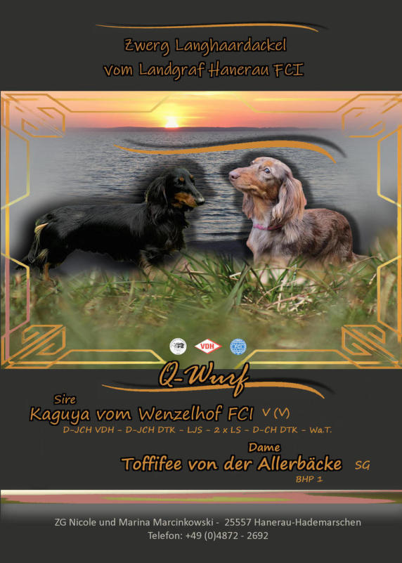 Wir informieren gerne über geplante Würfe, können aber auch nicht für 2-3 Jahre im Voraus Wurfplanungen bekannt geben.
