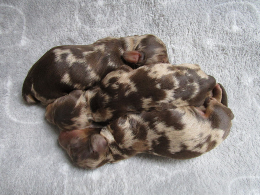 Wir sind so glücklich, unsere Empire Lady schenkt uns heute drei wunderschöne Welpen in der Farbe Brauntiger. Gehofft hatten wir, dass vielleicht ein brauner mit Abzeichen dabei sein würde, aber das liegt nicht in unserer Hand und wird von der Natur geregelt. Deshalb sind wir nicht minder glücklich, dass unsere Empire uns diese drei Schätze in die Wurfkiste legte.